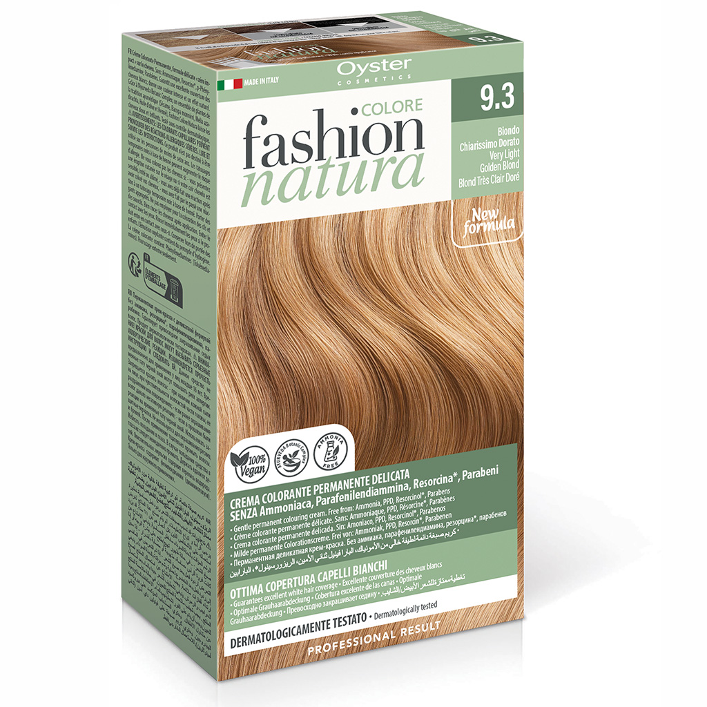 Fashion Natura è la linea per la consumatrice attenta al benessere dei capelli e dell’ambiente. La sua formula permanente in crema, senza Ammoniaca, senza Parafenilendiammina (PPD) e senza Resorcina, offre una colorazione delicata e rispettosa, ideale per chi desidera un risultato naturale e un impatto consapevole.