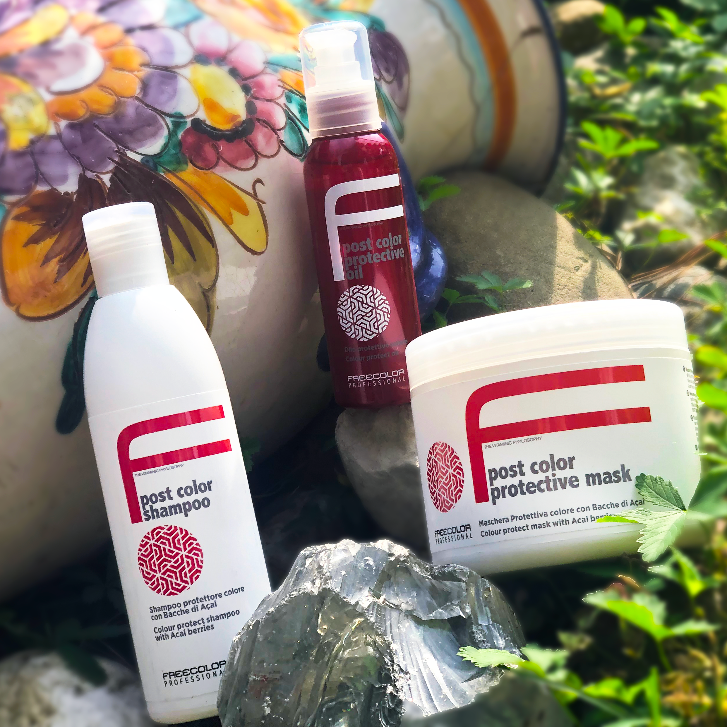 Postcolor è il programma di trattamenti Freecolor Professional per capelli colorati, decolorati e trattati. Arricchito con bacche di Açai.